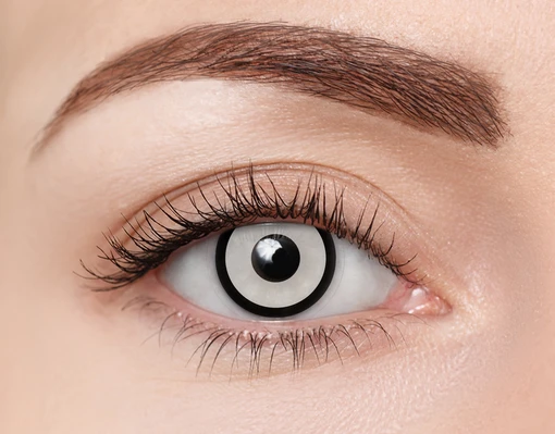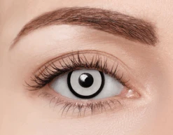 Clearcolor Phantom ‘Manson’ zijn witte lenzen met een zwarte rand. Ga jij voor een zombielook? Dan til je jouw outfit gegarandeerd naar een hoger niveau met deze partylenzen. De clearcolor Phantoms lenzen zijn comfortabel, je kunt ze gerust de hele dag dragen zonder dat ze gaan irriteren. Let op: na gebruik maximaal een maand houdbaar, vervang dagelijks de lenzenvloeistof voor de beste ervaring met jouw partylens.