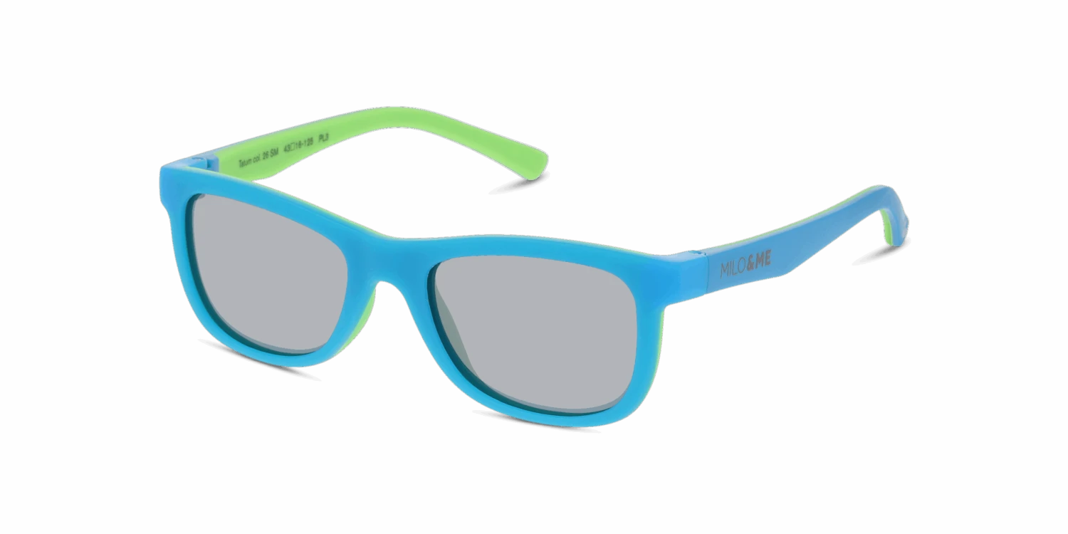 Nieuwe zonnebril nodig? Zoek niet verder! De Milo & Me Junior Sun Tatum 84090 26 is namelijk onmisbaar in jouw collectie. Deze prachtige kinderzonnebril is blauw met groen en is gemaakt van kunststof. De grijze zonnebrilglazen verminderen lichtschitteringen en houden omgevingskleuren realistisch. Deze zonnebril heeft gepolariseerde glazen met een spiegelcoating. Gepolariseerde glazen verminderen de lichtintensiteit en absorberen een deel van de lichtschitteringen. Gespiegelde glazen reflecteren meer licht en zorgen ervoor dat niemand jouw ogen ziet. De Milo & Me Junior Sun Tatum 84090 26 heeft een rechthoekig montuur. Dit past goed bij een ovale of ronde gezichtsvorm. Dit montuur valt klein.