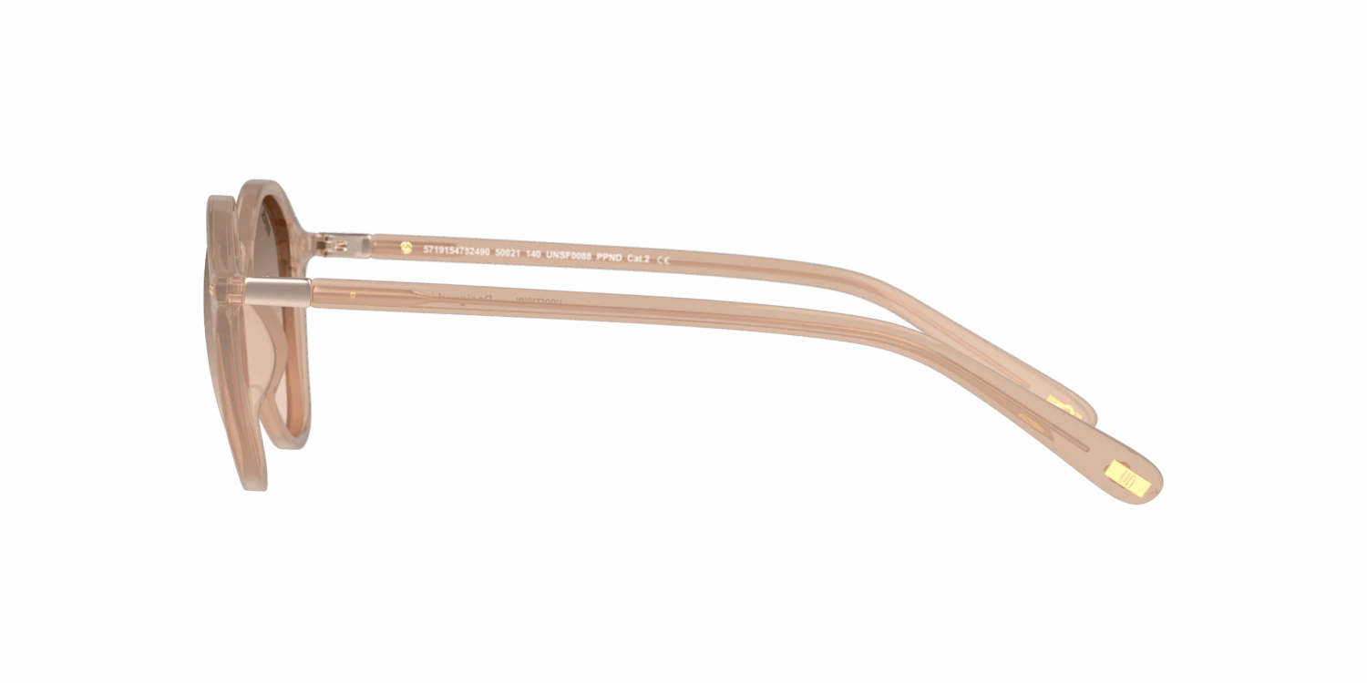 Nieuwe zonnebril nodig? Zoek niet verder! De Unofficial UNSF0088 PPND is namelijk onmisbaar in jouw collectie. Dit prachtige dames model is roze en is gemaakt van kunststof. De bruine zonnebrilglazen zorgen voor een verhoogd contrast en blokkeren blauw licht. Deze zonnebril heeft gespiegelde glazen. Deze glazen reflecteren meer licht en zorgen ervoor dat niemand jouw ogen ziet. Gespiegelde zonnebrillen zijn vooral gewild onder sporters. De Unofficial UNSF0088 PPND heeft een rond montuur. Dit past goed bij een langwerpige, ovale, vierkante of driehoekige gezichtsvorm. Dit montuur valt klein.
