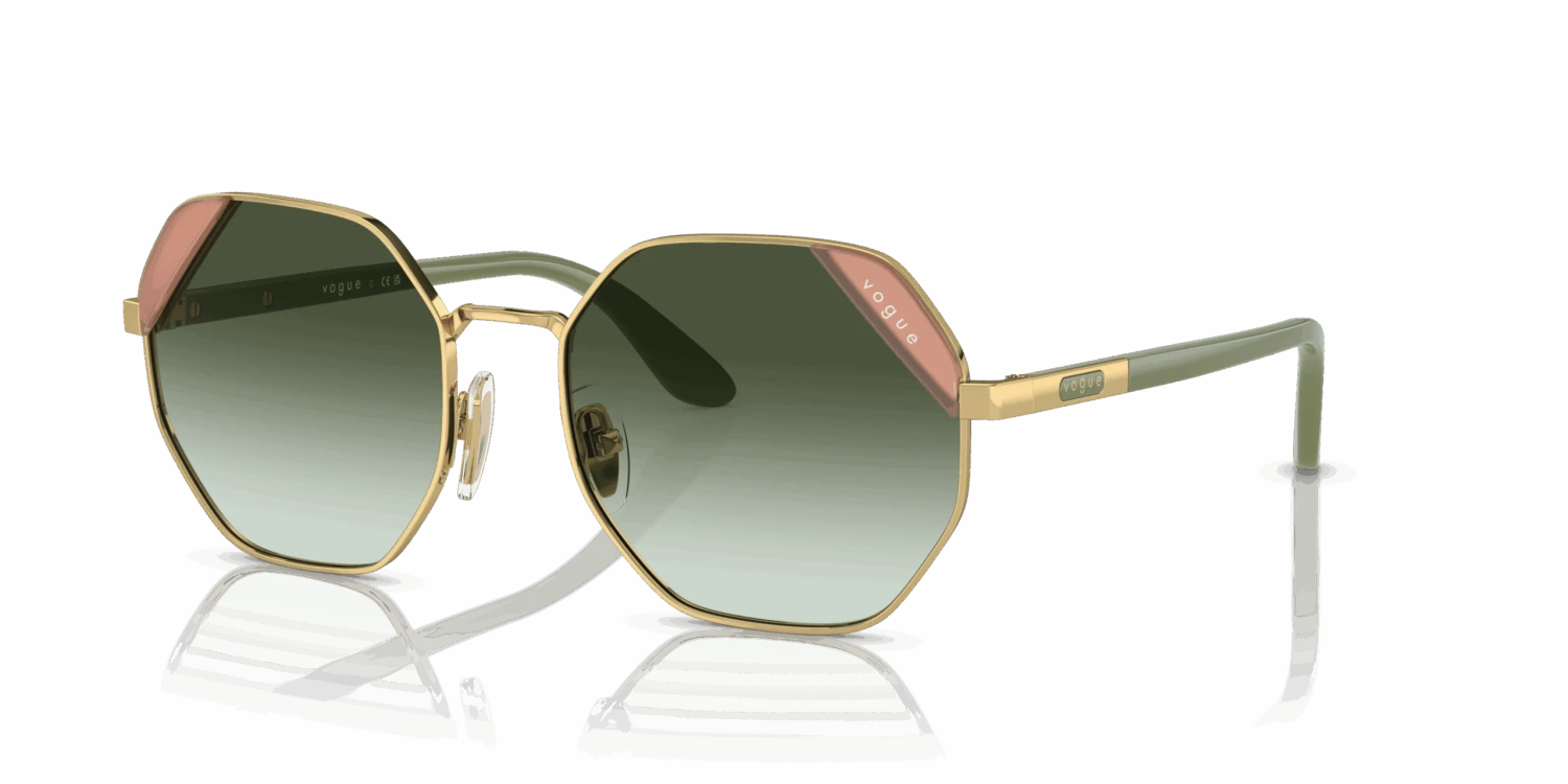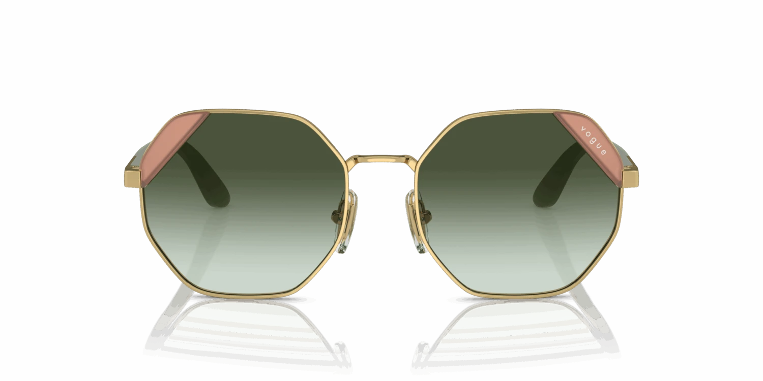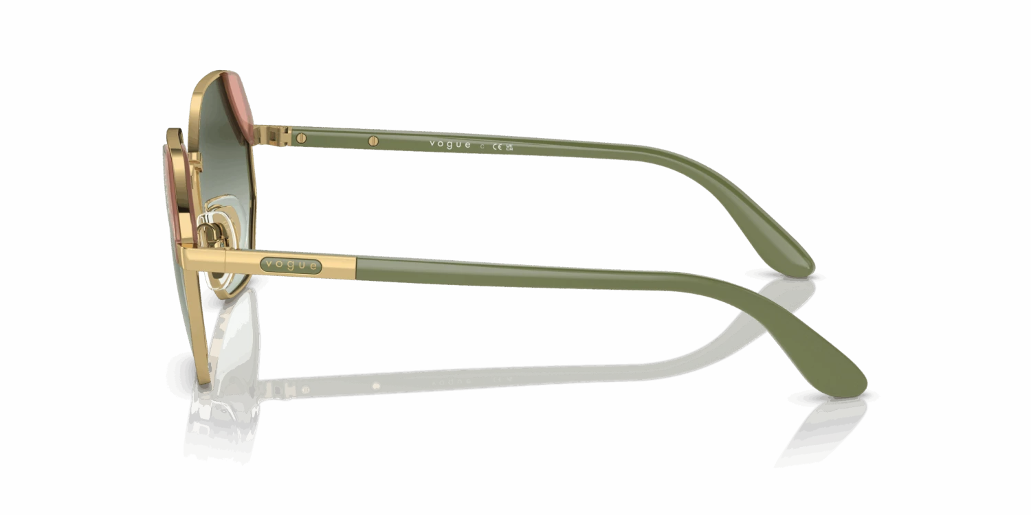 Nieuwe zonnebril nodig? Zoek niet verder! De Vogue VO4268S 280/8E is namelijk onmisbaar in jouw collectie. Dit prachtige dames model is goud en is gemaakt van metaal. De groene zonnebrilglazen hebben een kalmerend effect en remmen felle lichtschitteringen. De Vogue VO4268S 280/8E heeft een hoekig montuur. Dit past goed bij een ronde of ovale gezichtsvorm. Dit montuur valt klein.